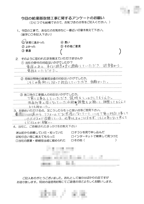 丁寧に工事をしていただき、説明もしっかりしてもらえた。